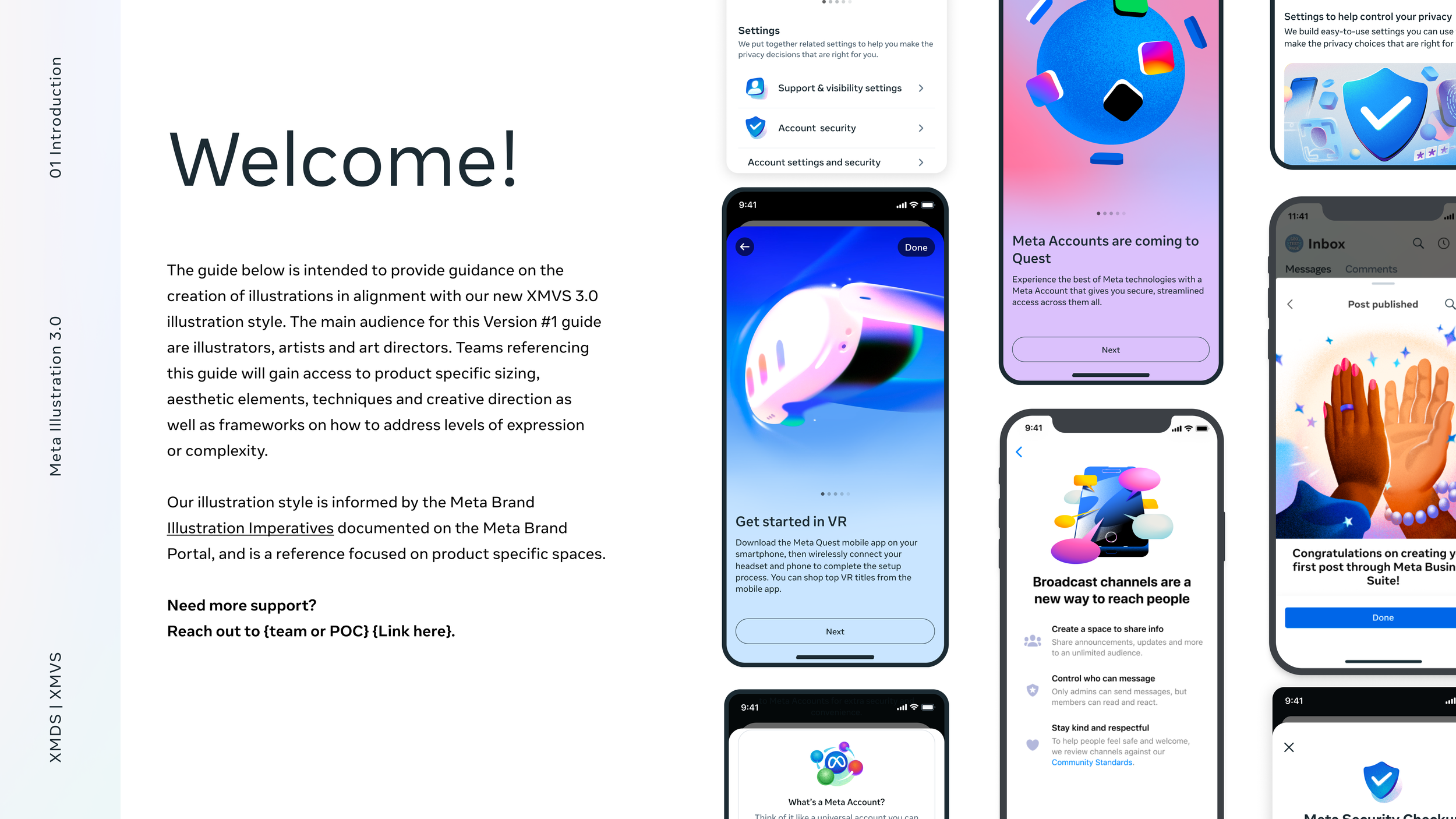 I supported the creation of Meta’s XMDS Illustration Style, collaborating closely with design and product partners to refine the principles, expressive range, and system rules that guide illustration across the Meta family of products. My contributions helped establish a cohesive, scalable framework for how illustration communicates within product, bringing clarity, consistency, and depth to the updated design system.